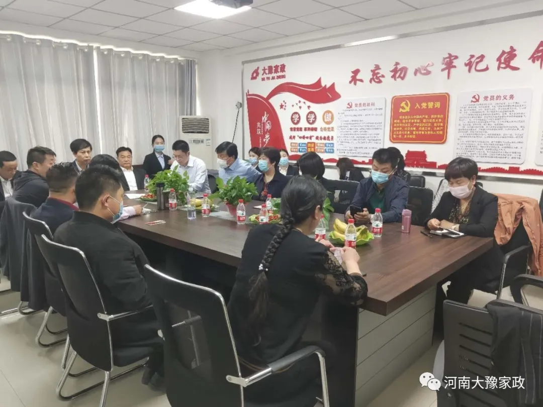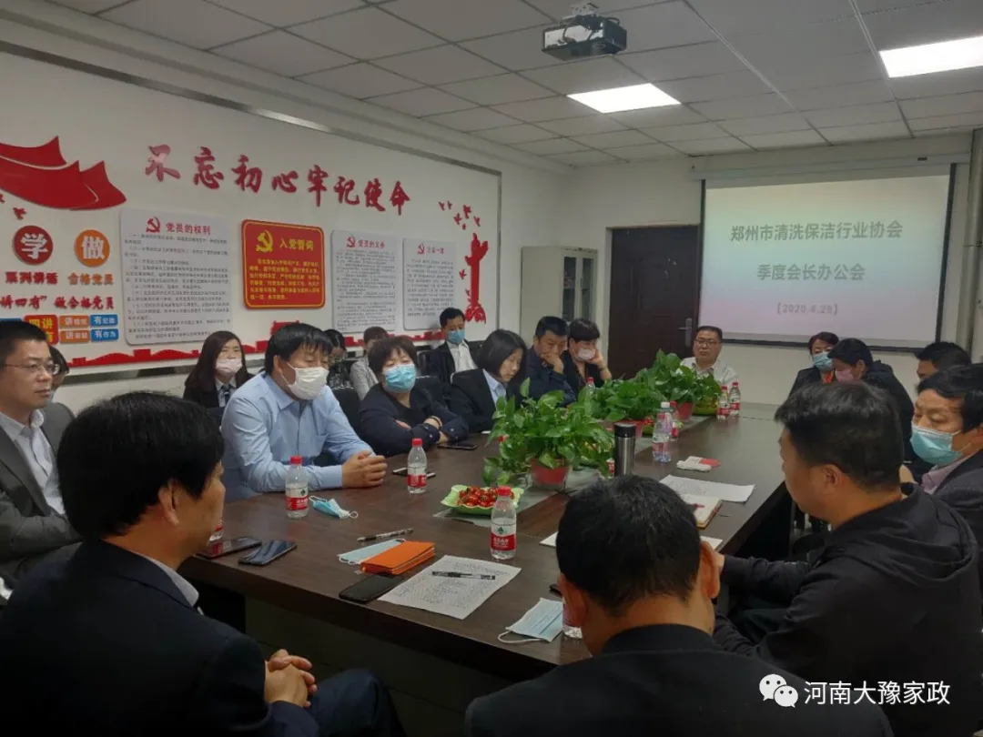 2020年4月29日下午,鄭州市清洗保潔行業(yè)協(xié)會(huì )第一季度會(huì )長(cháng)辦公會(huì )在河南大豫家政總部會(huì )議室舉行。