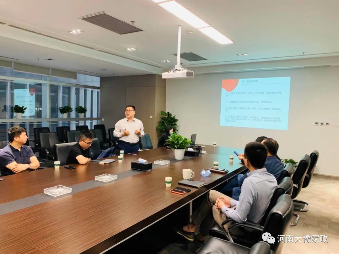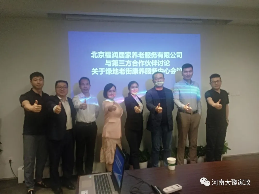 2020年5月7日下午,大豫家政董事長(cháng)王德重在綠地雙塔參加關(guān)于綠地老街康養服務(wù)中心討論會(huì ),在會(huì )議上董事長(cháng)王德重介紹了大豫家政的業(yè)務(wù)以及和綠地中心合作的事宜。