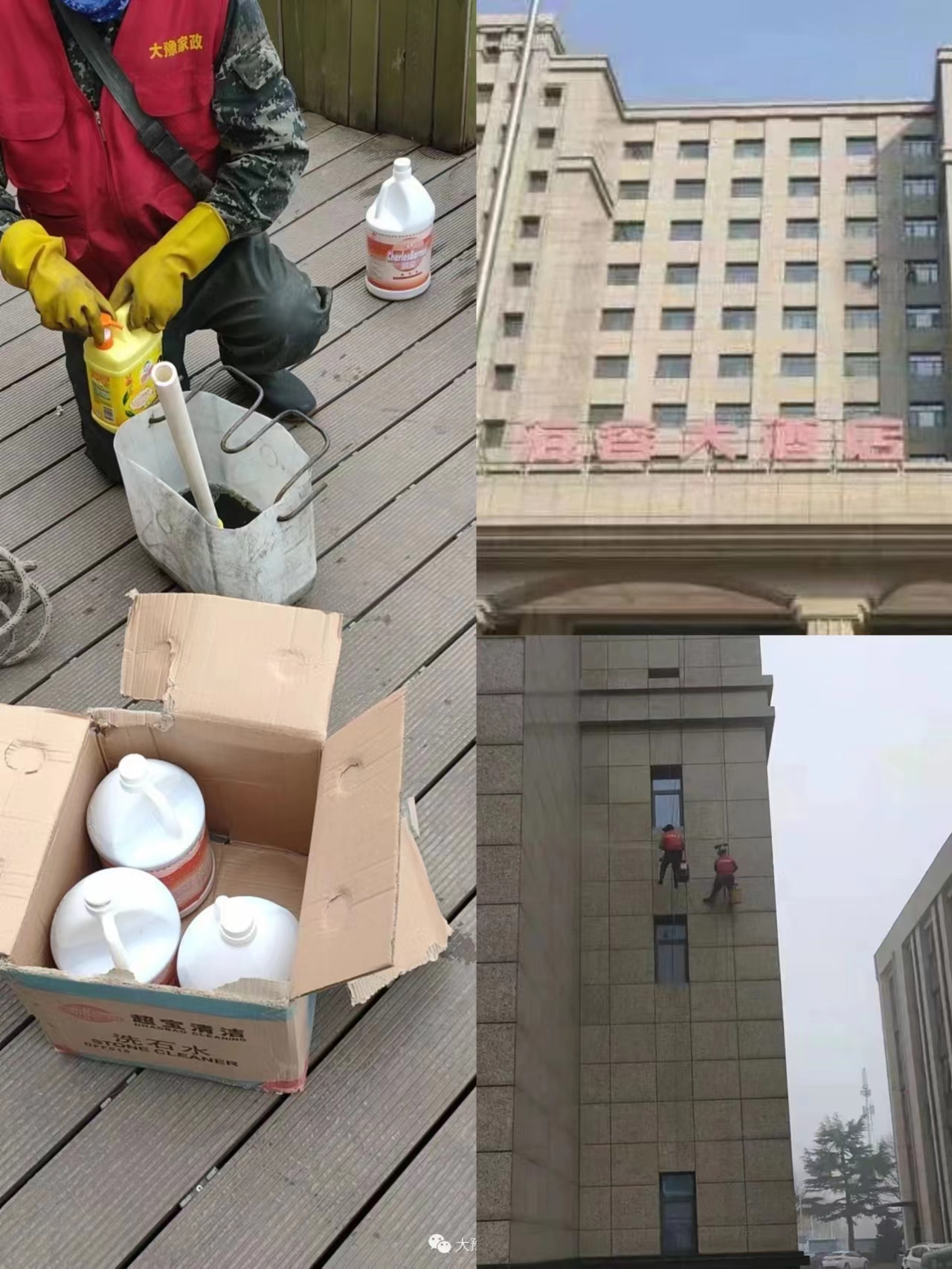 2022年3月14日,大豫家政員工在海容大酒店清洗外墻及玻璃保潔。專(zhuān)業(yè)的服務(wù)獲得了甲方的好評。
