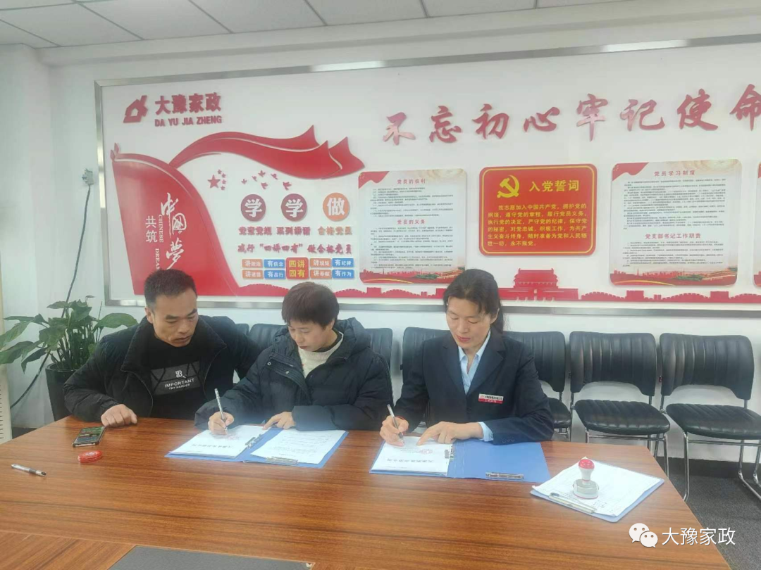 2023年11月13日上午,許昌市襄城縣趙曉桃女士來(lái)河南大豫家政服務(wù)有限公司簽訂加盟合同。