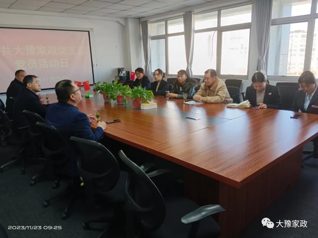2023年11月23日上午九點(diǎn),中共河南大豫家政服務(wù)有限公司支部委員會(huì )黨員活動(dòng)日在江山商務(wù)廣場(chǎng)6層620室召開(kāi)。