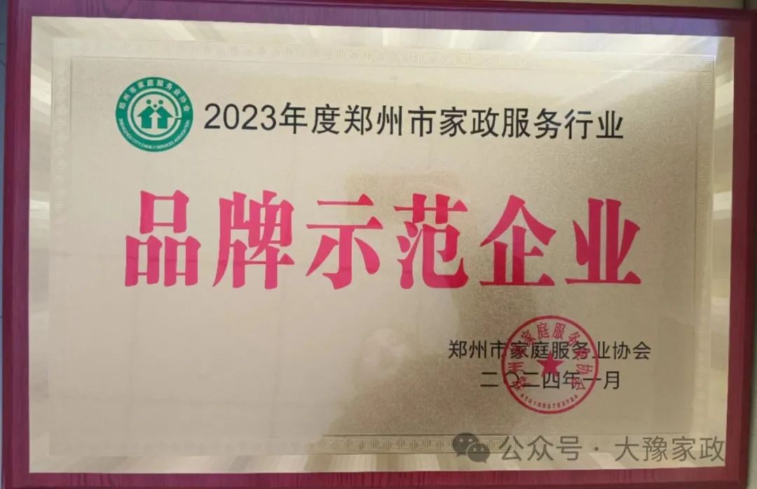 公司榮獲“2023年度鄭州市家政服務(wù)行業(yè)品牌示范企業(yè)”