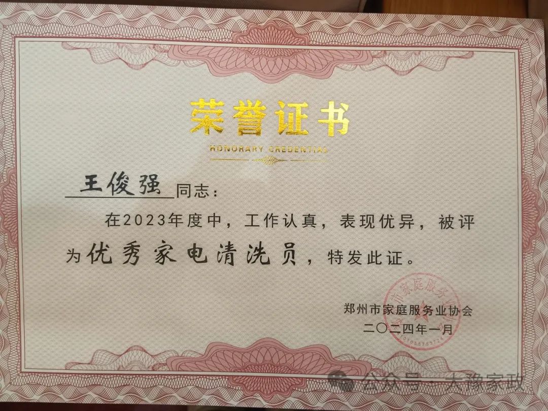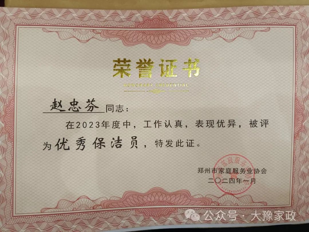 高雪云女士榮獲“鄭州市家政服務(wù)行業(yè)巾幗建功標兵”。