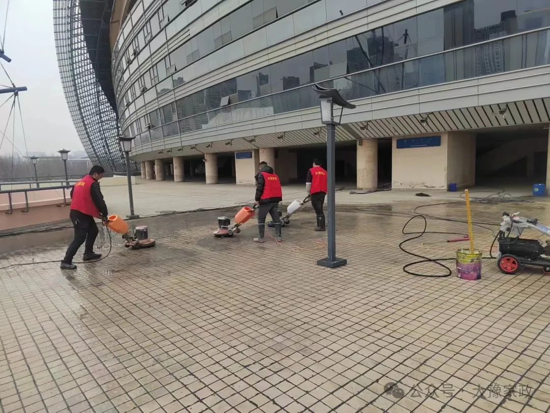 迎著(zhù)初升的太陽(yáng),開(kāi)啟明媚的一天。2024年3月5日上午,河南大豫家政服務(wù)有限公司的保潔團隊在河南省體育中心進(jìn)行為期三天的地面清洗。